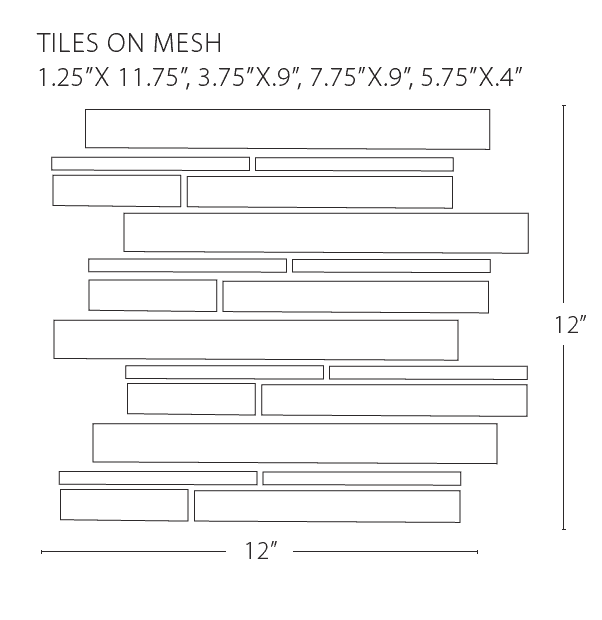 - Individual Tile Sizes: 1" x 8", 0.5" x 5", 1.25" x 12"
